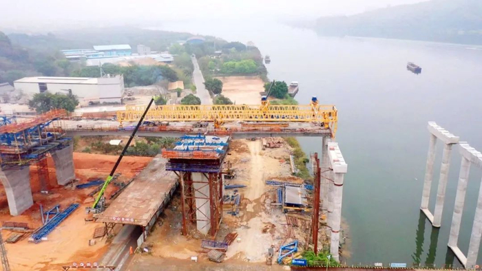 凤凰大桥主桥左幅中跨顺利合龙 项目总体进度完成约60%