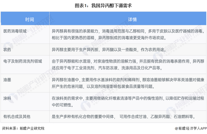 异丙醇下游需求行业较多