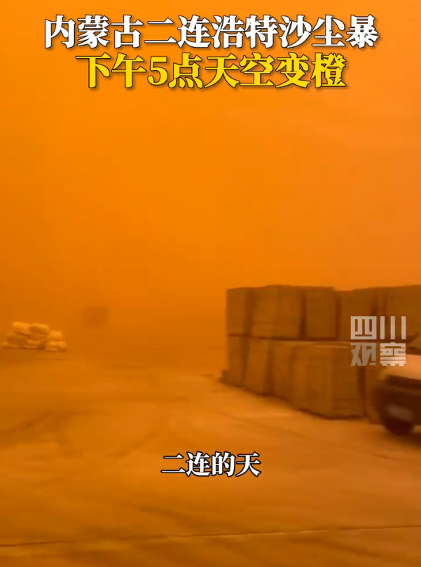 3月21日,内蒙古二连浩特出现沙尘暴天气,下午5点左右,天空变为橙色。当地发布橙色预警,强沙尘暴天气来袭,能见度将小于500米。