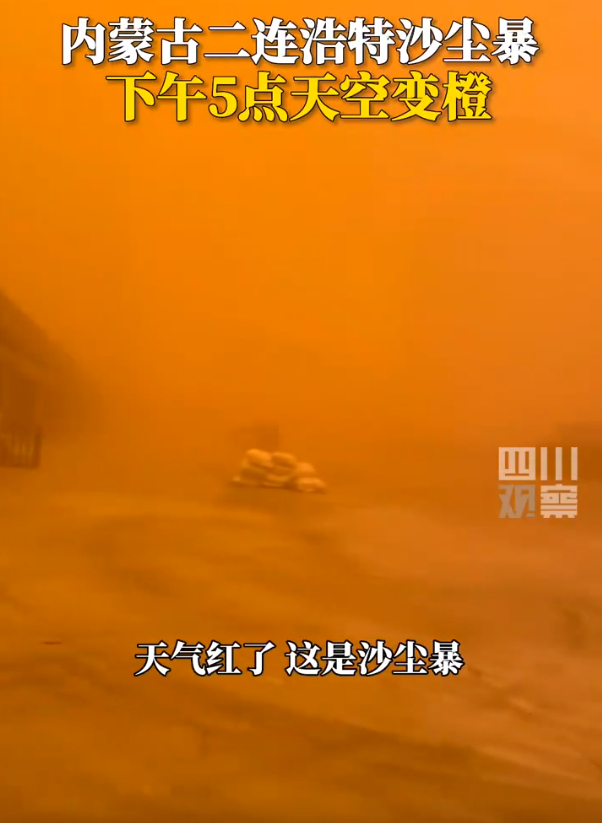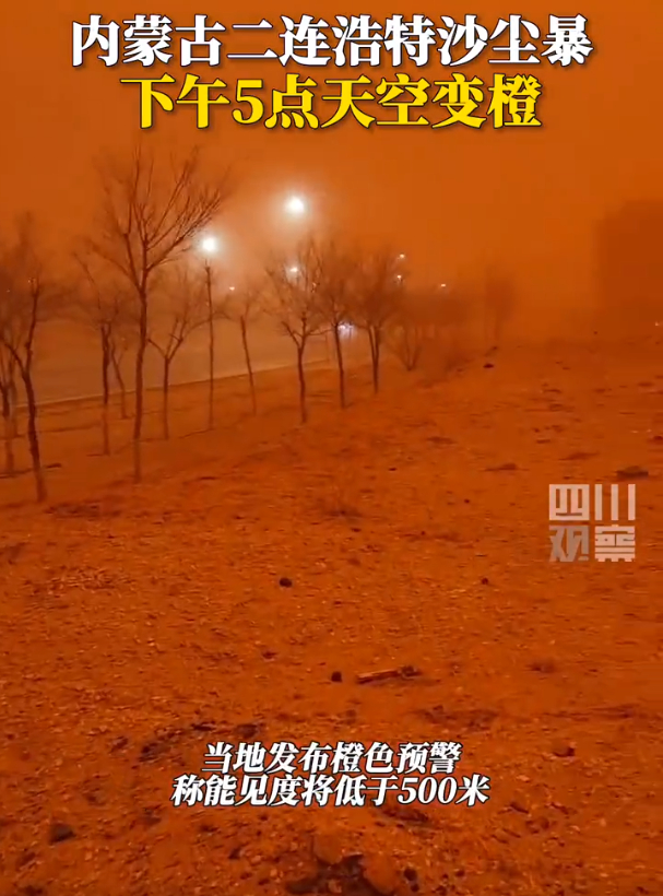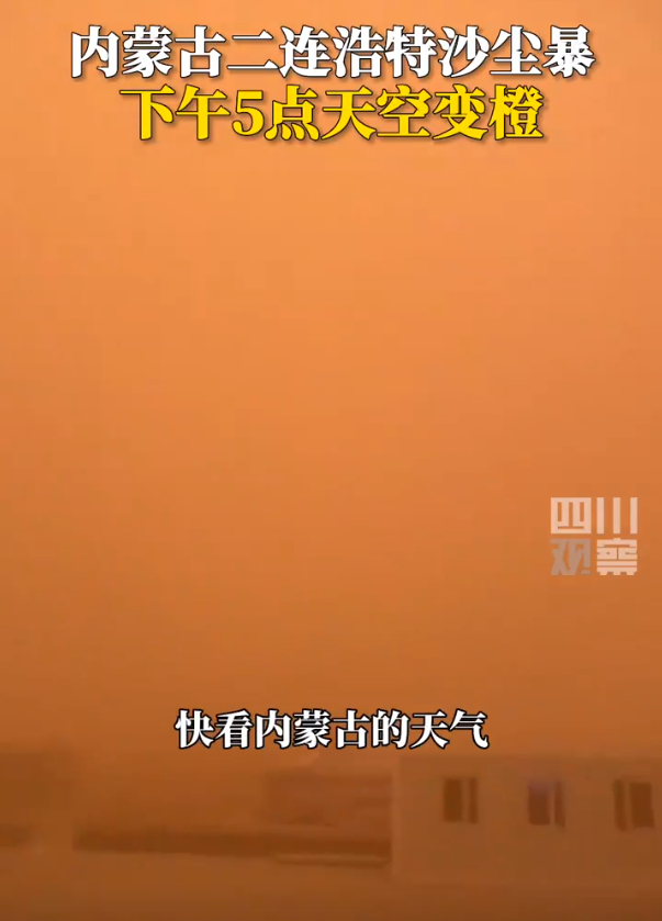 内蒙古沙尘暴天空变橙色,黄沙漫天!当地发布橙色预警