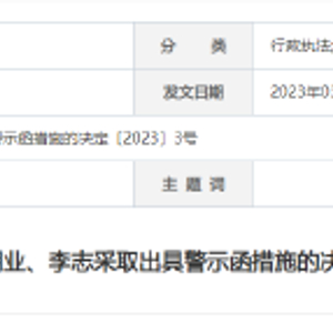 依据《上市公司信息披露管理办法》(证监会令第182号)第五十二条第三项的规定,我局决定对你公司及吴迪、徐朋业、李志采取出具警示函的监管措施,并记入证券期货市场诚信档案。你公司及相关人员应认真吸取教训,切实加强对证券法律法规的学习,严格规范信息披露行为,杜绝类似问题再次发生,并在收到本决定书之日起10个工作日内向我局提交书面整改报告。