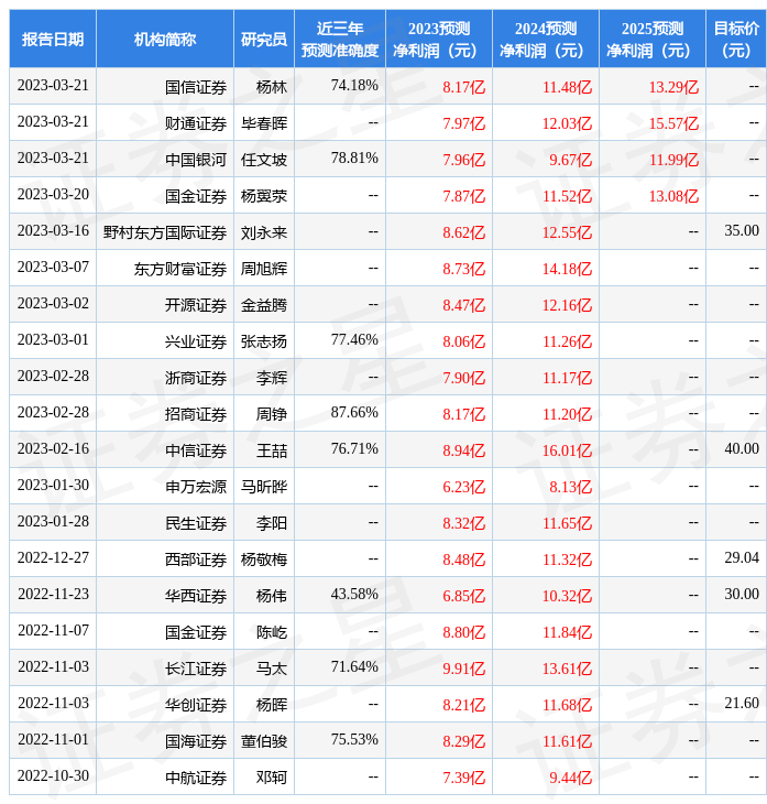 证券之星数据中心根据近三年发布的研报数据计算,招商证券周铮研究员团队对该股研究较为深入,近三年预测准确度均值高达87.66%,其预测2023年度归属净利润为盈利8.17亿,根据现价换算的预测PE为23.12。