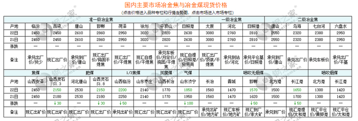 本周国内冶金焦价格主流稳定。即山东准一级干熄焦现汇出厂2940-3000元/吨,山西吕梁准一级湿熄焦现汇出厂2450-2500元/吨,河北邯郸邢台准一级干熄焦现汇出厂2830-2860元/吨,均稳。产地煤矿均已正常生产,产量收缩问题逐渐缓解。近期国产炼焦煤价格稳中有降,冶金焦成本支撑弱化,且近期钢价也持续下跌,成交方面表现一般,市场心态转弱。目前部分焦企盈利水平不佳,加之厂内焦炭零库存或低位,有扛降价风险能力,且冶金焦供需并无明显矛盾。预计短期国内冶金焦市场稳定运行,后期钢材市场需求若无法好转,冶金焦市场降价可能性较大。