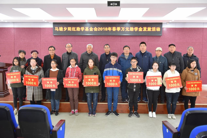 2007年,马塘中学退休教师杨光源牵头成立了马塘夕阳红助学基金会。杨老师是革命烈士的后代,父亲杨益森是一位新四军老战士,1945年8月时任营教导员,在一次战斗中英勇献身。杨老师说:“我是靠国家助学金完成初高中学业,成为人民教师的,退休后看到贫困孩子没钱读书,就想到了当年自己无助、备受煎熬的时候。所以,我决定发起成立马塘夕阳红助学基金会。”