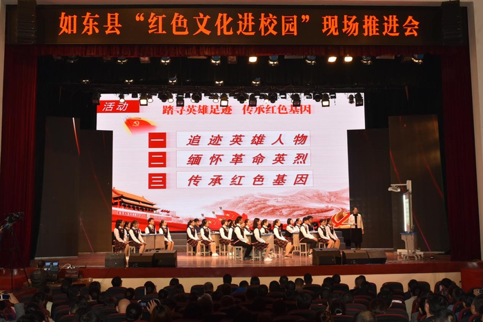学校开展红色研学旅行,带他们走出校园,走访老英雄、老党员,让青少年学生把老英雄、老党员身上的红色基因接过来,传下去,锤炼知行合一的品格。如以纪念抗日战争胜利70周年和建党百年庆典为契机,组织开展“寻访抗战足迹”“缅怀先烈,不忘初心”等主题教育活动,先后拜祭了如东县抗日民主政府纪念碑和马塘革命烈士英雄壁、参观了马塘革命烈士纪念馆、革命史迹厅和先锋厅、寻访了如东抗日民主政府遗址和桐本桥、走访了年近九旬的抗战老战士孙学高,最后每人撰写了《抗战足迹寻访记》和《缅怀先烈奋发向上》并进行了心得交流。同学们在潜移默化中接受革命传统教育和爱国主义教育,坚定热爱党、感恩党、跟党走的理想信念。在“寻访抗战足迹”主题教育活动中,制作了《为了不能忘却的记忆——“寻访抗战足迹”巡礼》的专题片,被如东电视台录用并播放。组织者杨光源同志被评为江苏省教育系统关心下一代工作先进个人、江苏省“老少携手千站万人走访抗日老英雄” 先进辅导员。学校还组织党员赴盐城、海安新四军纪念馆、苏中反清乡纪念馆进行主题党日活动,开展党性教育。