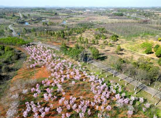 日前,笔者在武汉市园林科学研究院樱花科研基地看到,深红、粉红、浅红、浅粉等各种花色的早樱竞相开放。一株樱花树长长的枝条上,开满了略微下垂的深红色樱花,宛如一条长长的樱花棒。另一株粉红色的樱花树,繁花似锦,引来无数蜜蜂采蜜,“嗡嗡”之声不绝于耳。