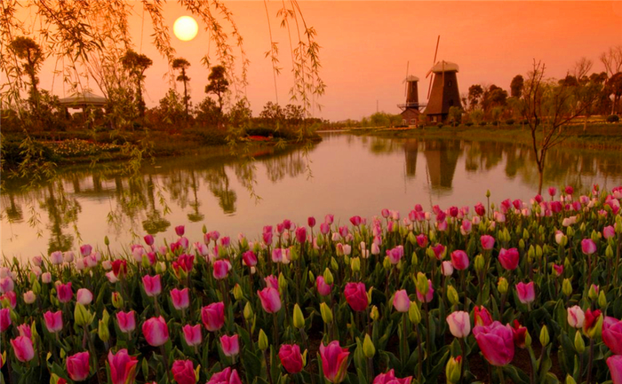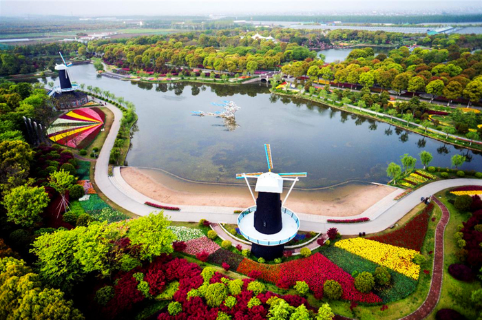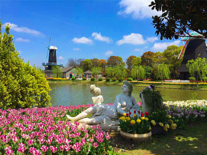 园内颇具标志性的景观区域——荷兰街,藏在湖边,被绿树环绕,像是爱丽丝仙境一样浪漫。在这里您可以边喝着下午茶边欣赏荷兰风情的大风车,还有阳光下耀眼四射的七彩郁金香,瞬间带你穿越到荷兰。也可划一艘小船沉浸在浪漫与童话交织的花海中,咔嚓一声,随手一拍,就是大片。