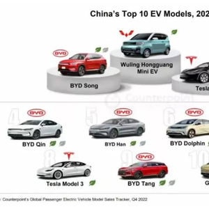 2022年中国卖得最好的电动车排行榜出炉:第一竟然不是比亚迪