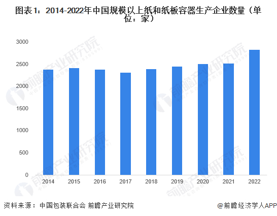2022年中国规上纸和纸板容器生产企业数量超2800家