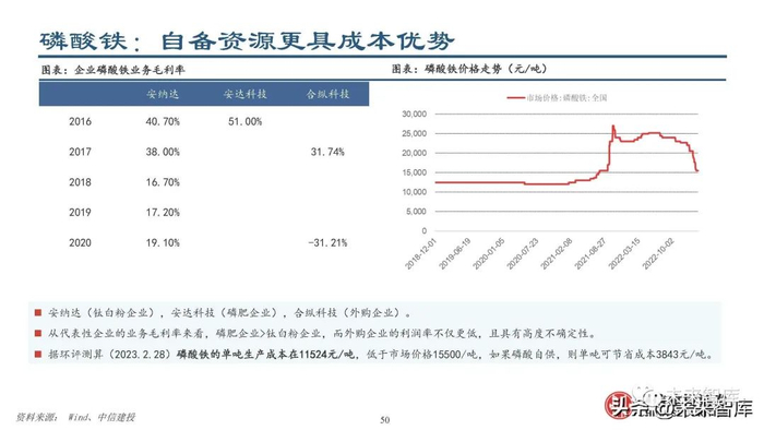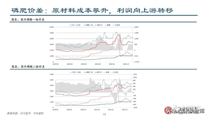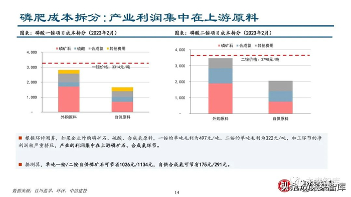 根据环评测算,如果企业外购磷矿石、硫酸、合成氨原料,一铵的单吨毛利为497元/吨、二铵的单吨毛利为322元/吨,加工环节的净 利润被严重挤压,产业的利润集中在上游磷矿石、合成氨环节。据测算,单吨一铵/二铵自供磷矿石可节省1026元/1134元,自供合成氨可节省175元/291元。