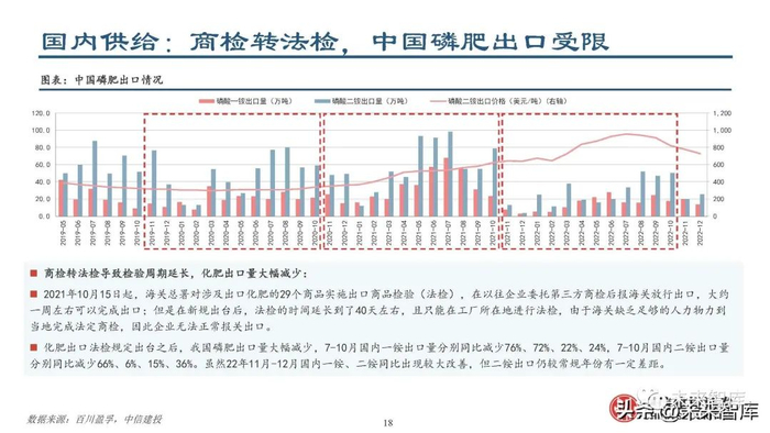 制裁影响:2月26日,美国、欧盟、英国和加拿大发表联合声明,禁止俄罗斯的几家主要银行使用SWIFT,使得俄罗斯的出口贸易受到重挫;物流影响:俄乌冲突爆发之后,多艘船只在黑海地区受袭,黑海成为高危地带,相应航线的货船数量骤降,航运成本攀升,俄罗斯磷肥的出 口受限;关税影响:2022年11月11日,俄罗斯副总理兼工业和贸易部长丹尼斯·曼图罗夫表示,该国将为化肥设定出口关税,政府官员们已经准备了 一份草案:政府将对化肥高出450美元的部分收取23.5%的出口关税。撇除贸易数量的影响,关税将抬升磷肥的国际贸易成本。