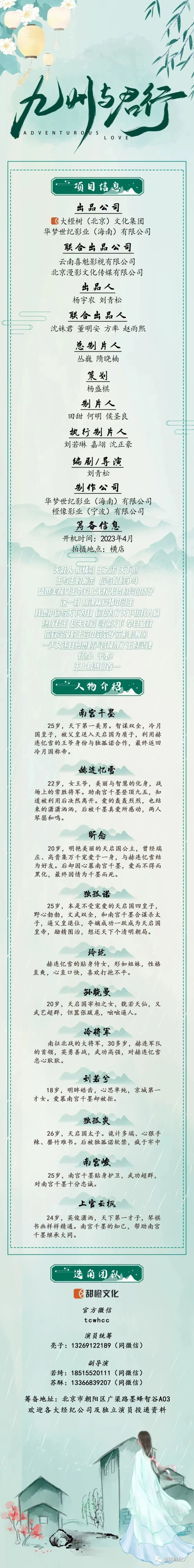 今日组讯|《九州与君行》、喜剧电影《脑洞大开》等