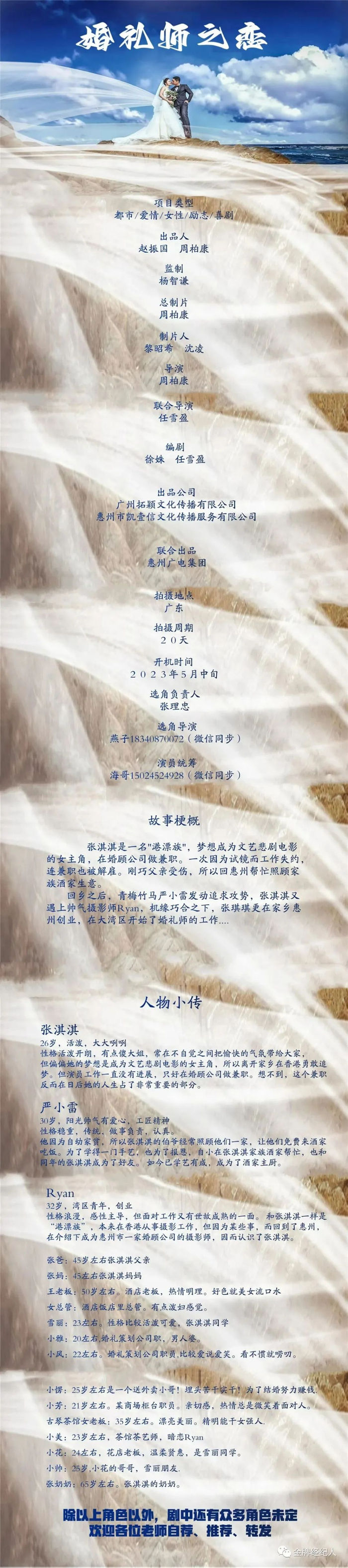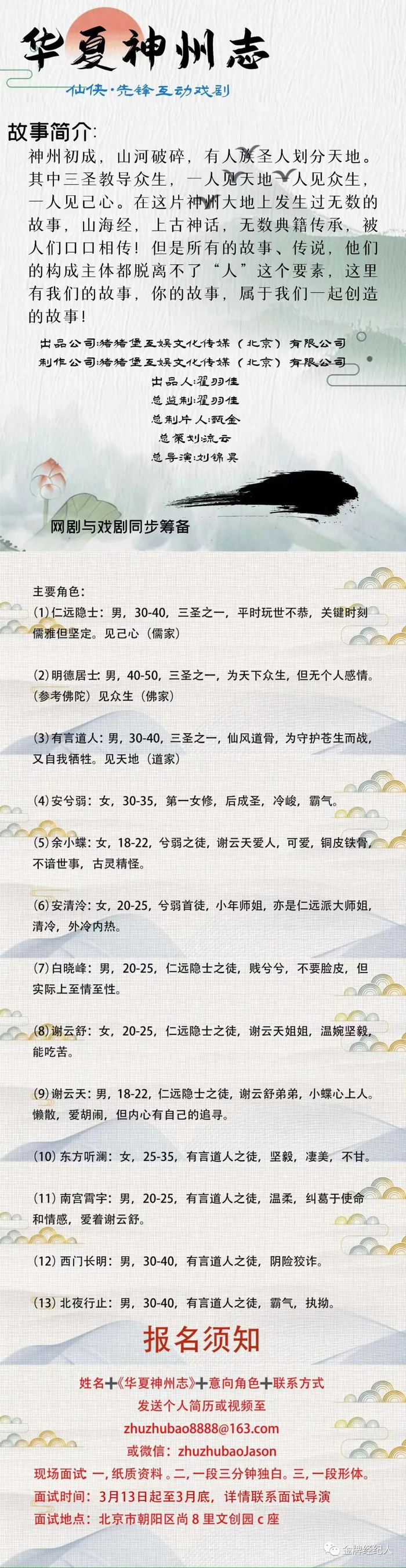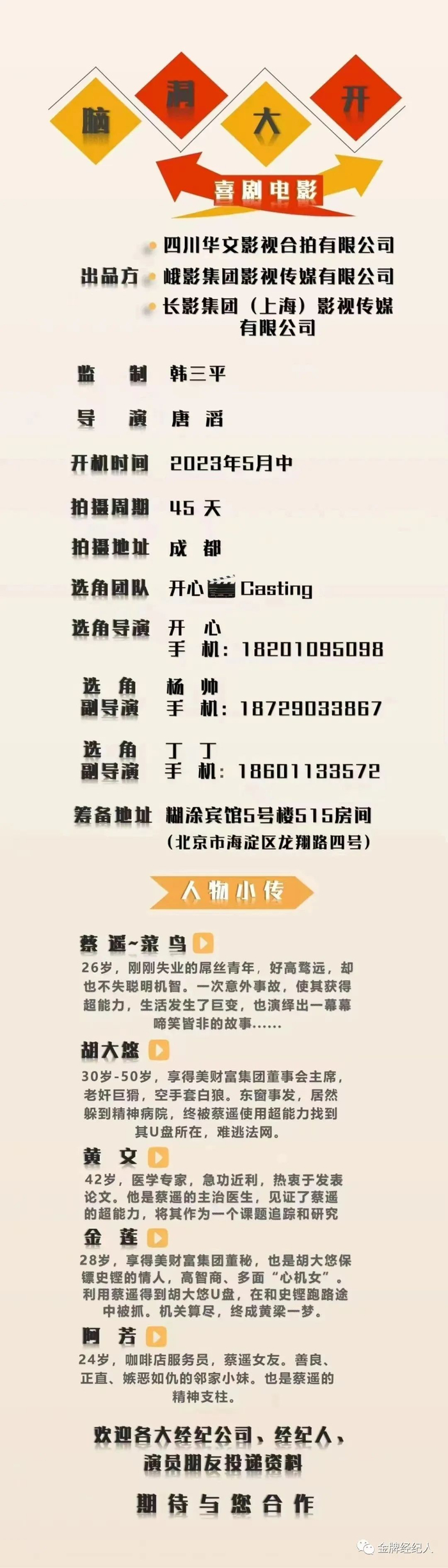 本栏目组讯由小编采集并供业内参考交流使用,信息内容如有变化请根据实际情况核实。各大剧组如有组讯发布,可以联系金牌经纪人,协助扩散!