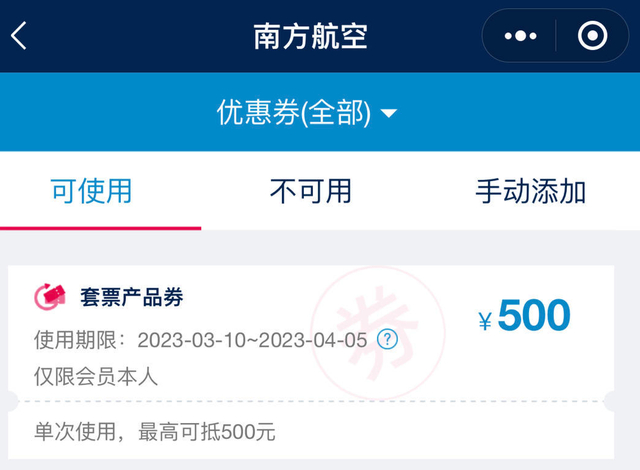 林女士够买的南航早鸟券