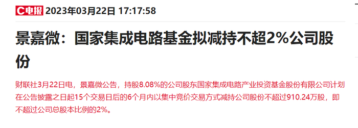 近期,大基金频繁发布减持计划,拟减持的公司除了今日公告的景嘉微、安集科技,还包括长川科技、万业企业、国科微。