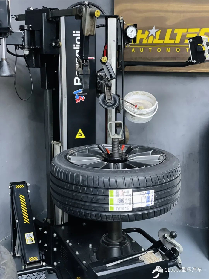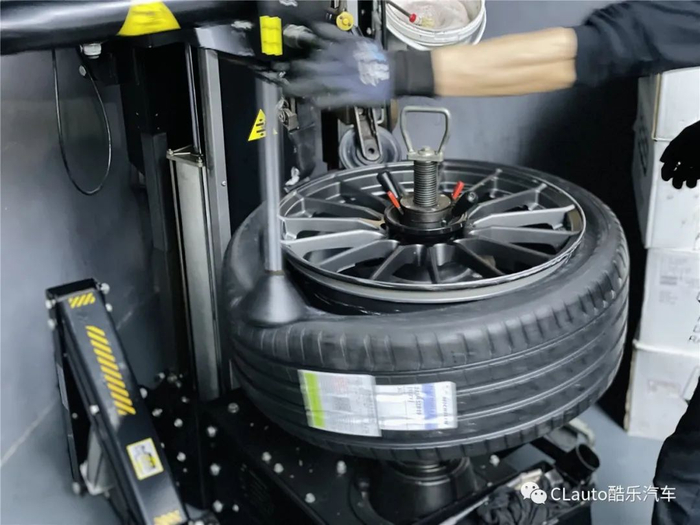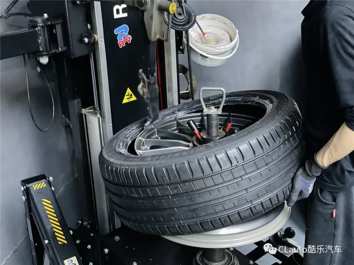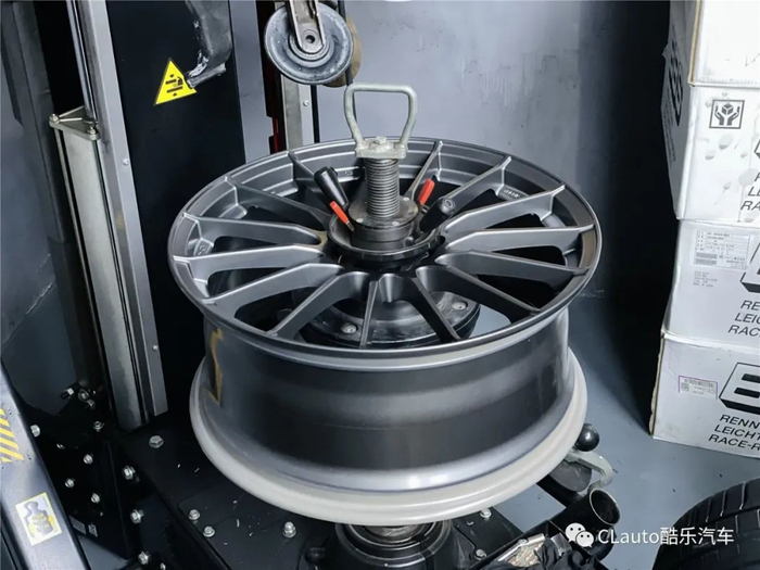 注意:拆胎机的夹具和撬棍千万不能用。轮胎安装方面,我们选择无撬棍的Rav拆胎机,用安全的方式把轮胎无损安装在全新的轮毂上。谁也不想新轮毂就被拆胎机的夹具和撬棍弄花,虽然不影响使用,但非常影响心情。