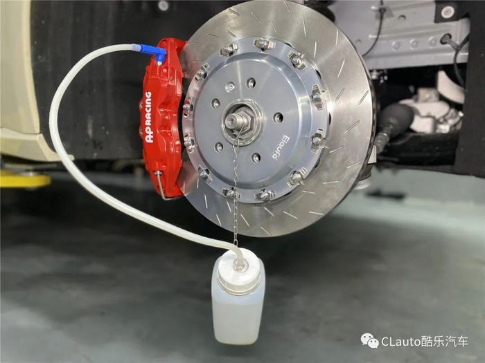 注意:刹车渗油分分钟车毁人亡 不要小看渗油这件事,高负荷工作下,刹车油沸腾,卡钳内部气体通过放油孔逃逸造成整个刹车液压系统失压,依然是分分钟车毁人亡。