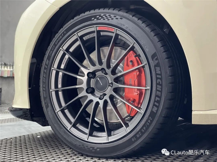 这辆车轮圈采用RS05RR(Enkei rs05rr 19-8.5-35 5-120 MDG),搭配米其林PS4S轮胎,使用原厂尺寸,但改变视觉风格,可以合法备案。