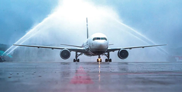 2022年7月17日,顺丰航空的全货机在我国首个专业货运枢纽机场湖北鄂州花湖机场滑行。当日,该机场正式投运(肖艺九/摄)