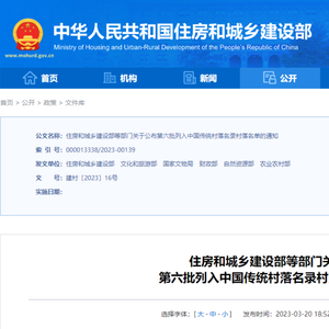 近日住房和城乡建设部等部门对外公布第六批列入中国传统村落名录村落名单