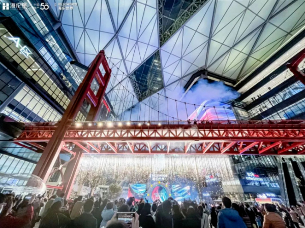 海乐世界Living Mall火速出圈秘笈之场景营造,依托建筑特色优势不断焕新场景,营造打卡拍摄地。海乐世界开业进入第2年,长达65米的室内时光塔桥,打造兔年国风主题美陈“HAPPY‘TWO’YOU好运桥”。10米高的福满金生树空降8000㎡未来广场。超300㎡西南第一块室内裸眼3D巨幕,爱的告白行动面向市民免费开放互动表白等。海宝剧场免费支持个人才艺秀和粉丝音乐会等活动举办。