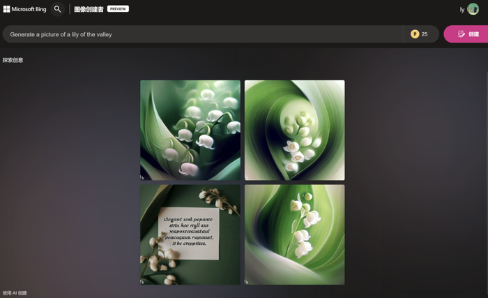 在 Bing Image Creator 面向部分用户开放之后,很多人也开启了试用模式,其中可以免费尝试生成 25 张图: