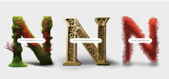 基于以上,Adobe 在这场发布会上直接带来两个大招,一个是根据文本提示 prompt 创建图像,对标 Midjourney、Stable Diffusion 这样传统的文本生成图像工具;一个是给文字加上 AI 生成的纹理和图案,类似于 AI 辅助的 WordArt。
