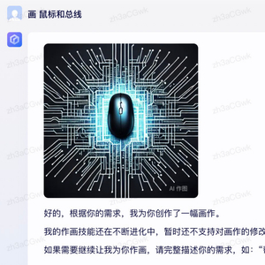 目前,在文心一言输入“鼠标和总线”,其呈现的画作基本符合中文语义。