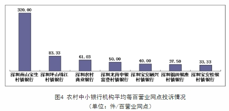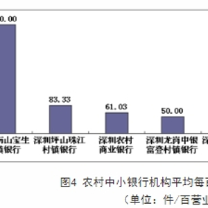 2022年下半年,农村中小银行机构的平均每百营业网点投诉量的中位数为37.50件/百营业网点(含未出现消费投诉的农村中小银行机构)。其中,平均每百营业网点投诉量居前的为:深圳南山宝生村镇银行320.00件/百营业网点,深圳坪山珠江村镇银行83.33件/百营业网点,深圳农村商业银行61.03件/百营业网点。