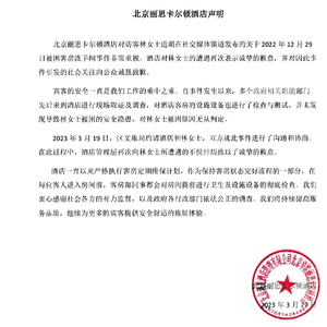 在3月15日事件引发讨论登上微博热搜后,北京丽思卡尔顿酒店曾发布道歉声明,表示正在试图与林琳奇联系,随后林琳奇再次发布视频表示并未收到酒店的联络。
