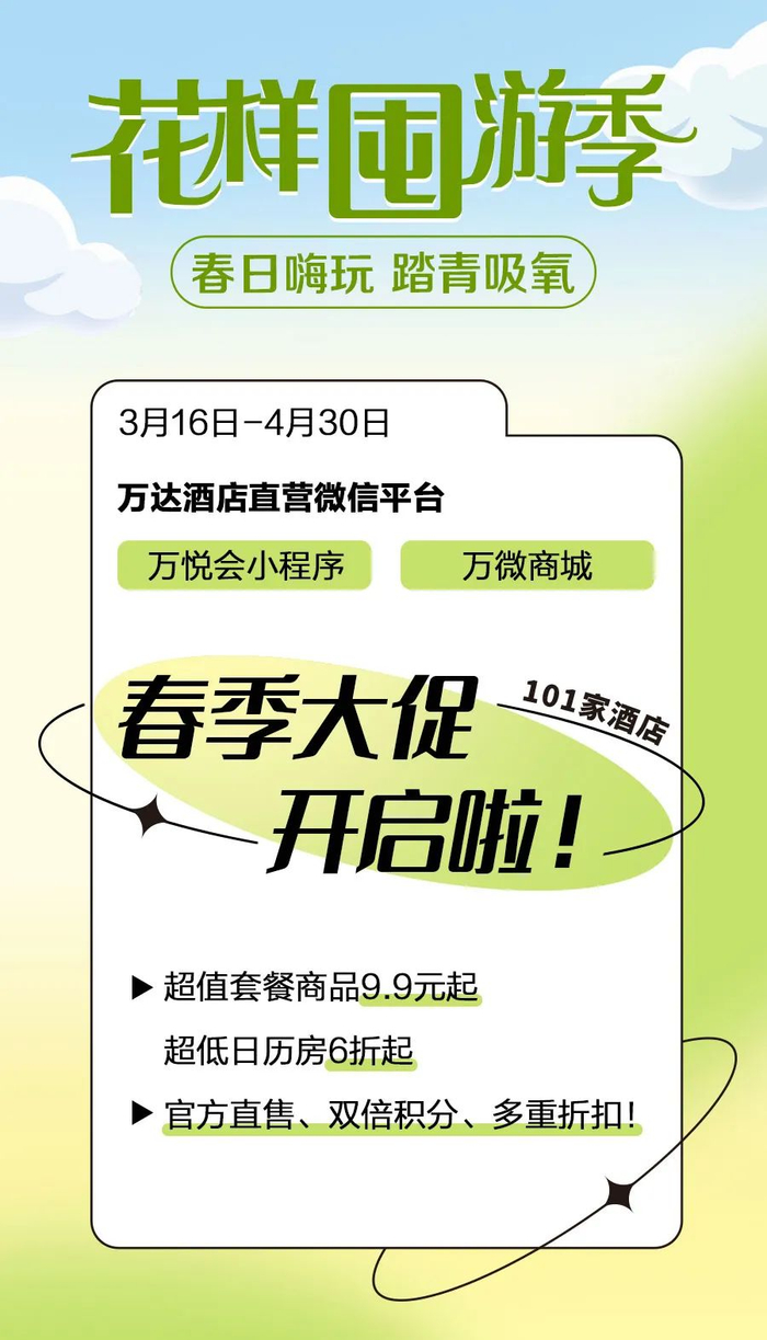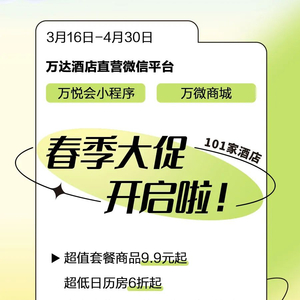 全国万达酒店春季大促!101家都有给力折扣