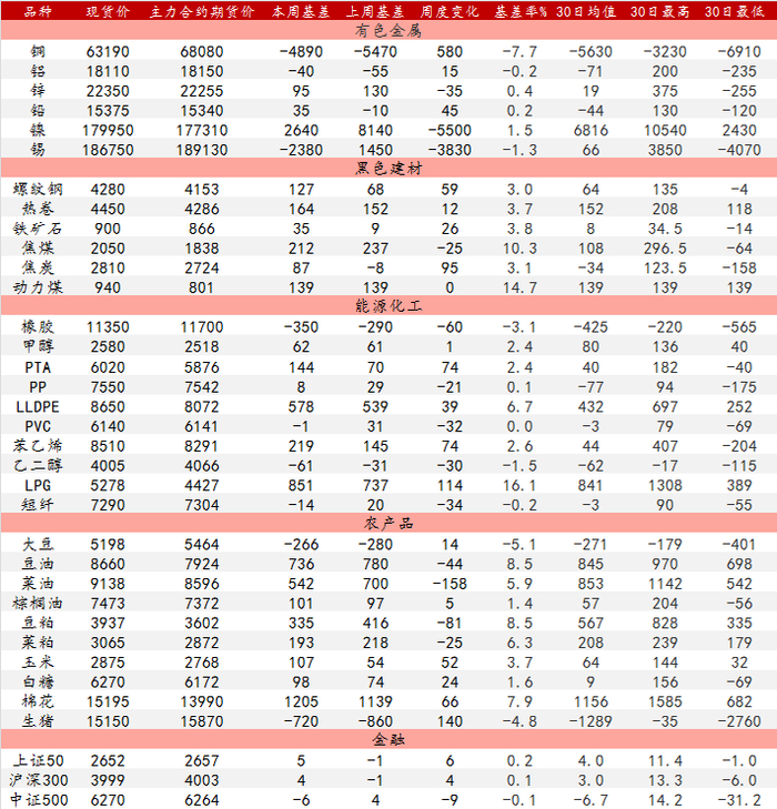 各品种基差观察