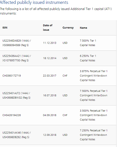 FINMA并公布了所有受影响的公开发行的AT1工具的清单。