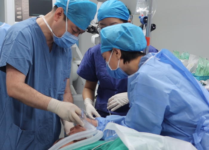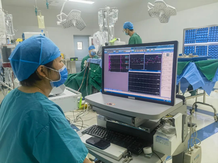 3月20日,在北京地坛医院升级改造后的崭新手术室内,麻醉科主任程灏、副主任牛少宁、赵丽琴大夫等麻醉科团队为手术保驾护航,神经外科主任冯恩山主刀,李培亮医生一助,杨博医生二助,王芳电生理监测,李童护士巡回,杜然护士台上配合,在医护人员精心配合下,手术如期进行。