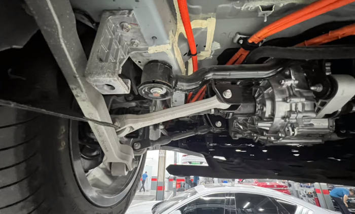 因为在创世版推出以前,汉的后桥一直用的是三连杆的独立悬架,由于连杆太细,还被网友戏称为“筷子悬架”。新款对三连杆进行了强化除了,悬架材质升级成铝合金,簧下质量减轻了9公斤,全系还加装了FSD可变阻尼悬架,这一变化让准车主兴奋不已。