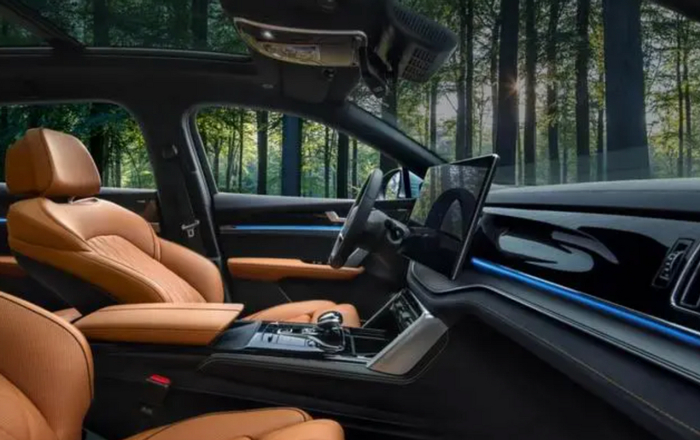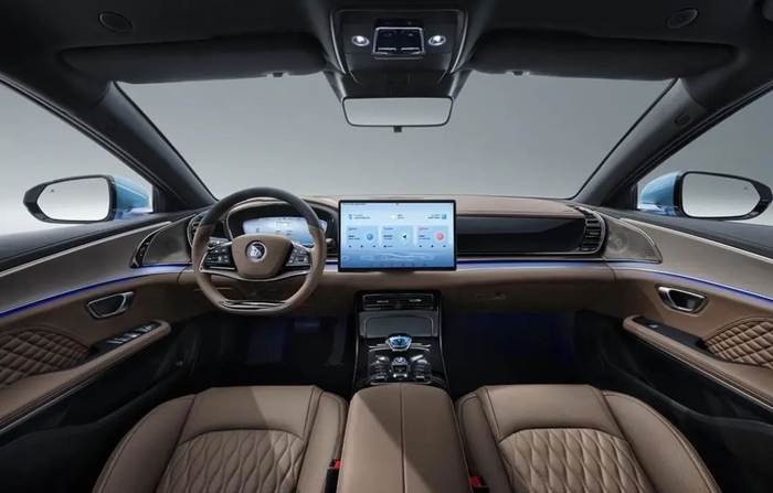 内饰上,依旧是12.3英寸全液晶仪表和15.6英寸自适应旋转中控屏,搭载DiLink 4.0(5G)智能网联系统。610公里版本将采用金鳞橙内饰颜色,搭配一体式运动座椅,其他版本则均为麒麟棕内饰颜色,不过715公里旗舰型将会配备实木饰板。