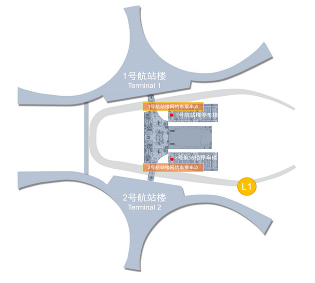 一号航站楼网约车乘车点:一号停车楼L1层网约车上客区