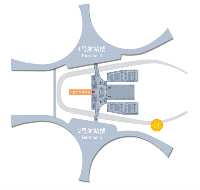 一号航站楼出租车乘车点:一号航站楼侧L1层