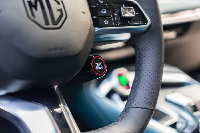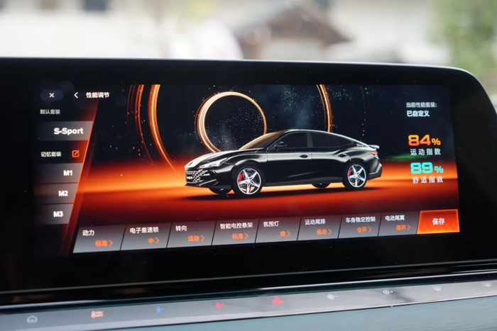 摁下方向盘的X mode按钮,这个按钮将其理解为“一键战斗”模式,可以自定义动力、电子差速器、转向、电控悬挂等驾驶相关的选项,把里头所有运动设定都拉满,这是对试驾一款运动型车的基本尊重。