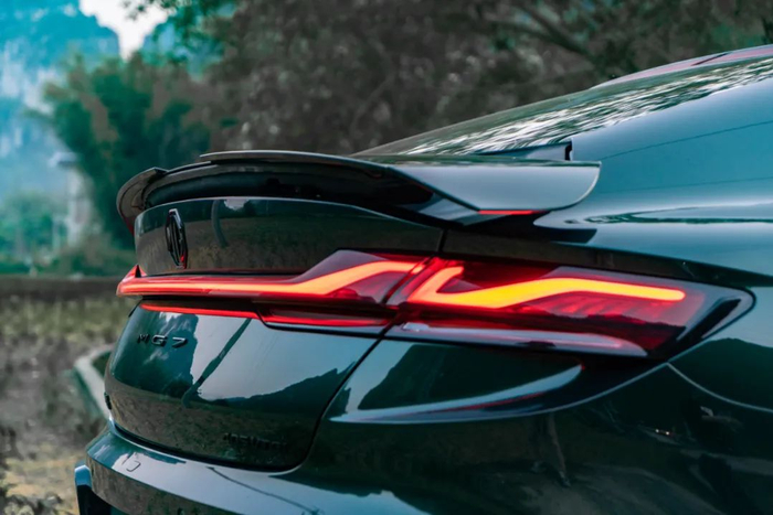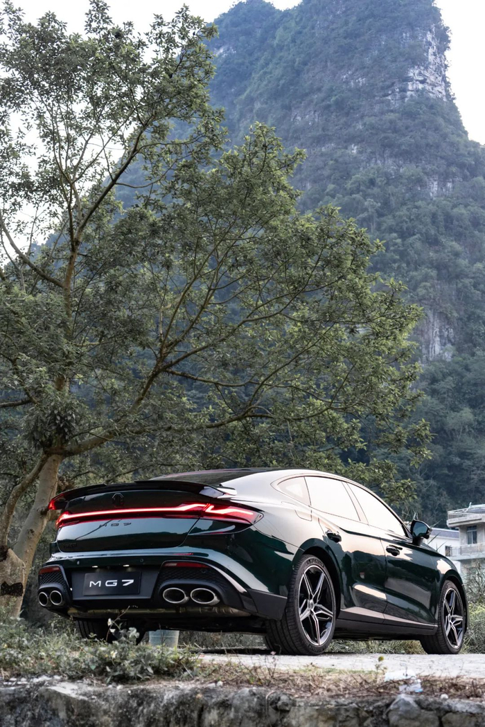 OK,驾驶部分就说这么多。接下来聊聊静态,关于这款车外观,我的同事在赛道试驾那篇文章就说得很清楚,这里一些细节点就不再赘述。我跟他的观点一致,MG7整台车最好看的部分,是其后45度。