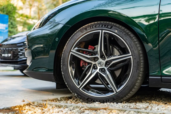 而且,仔细观察车子轮胎型号,是米其林主打低滚阻和静音的e·PRIMACY轮胎。所以,你要说它有多硬核,从轮胎型号的选用上能看出来,厂家还是想照顾到行驶质感的。该说不说,确实没有花钱的不是,用上这条静音轮胎的MG7,胎噪几乎是没有,这点还是挺意外的。