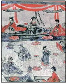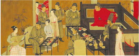 这里似乎表现的不是用餐方式,而是贵族们怀古幽思心绪的一种显露。其实这也说明了分餐制的传统制约力还是很强的,因此说从分餐到会食有很长的过渡阶段,这何尝不是当今会食、共食聚餐气氛下的分餐制呀。
