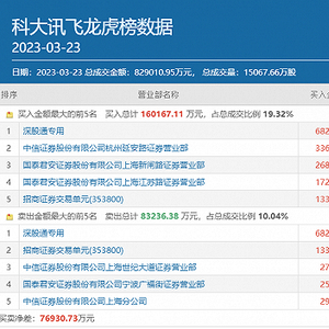 除了章盟主以外,另一位知名游资上海超短帮的常用席位国泰君安证券上海新闸路3月23日也高居科大讯飞买方第三位,买入金额为2.68亿元,同时北上资金也在积极做多该股,当日同时居于该股买卖双方榜首,净买入金额为4.2亿元。