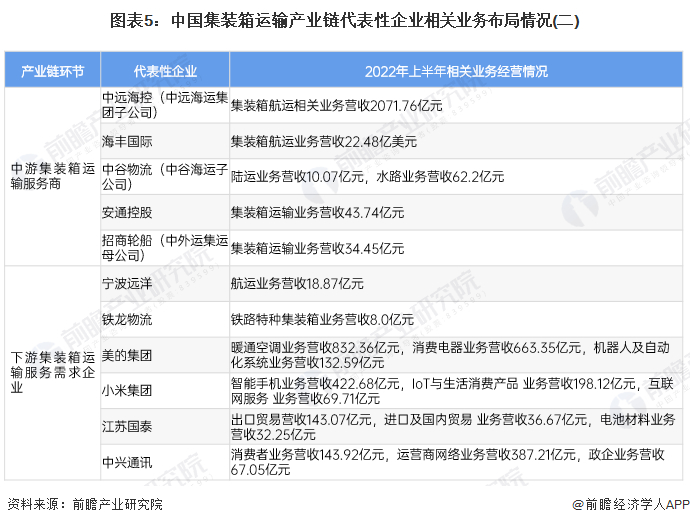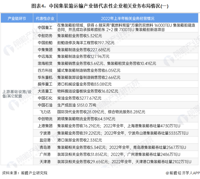 本文核心数据:集装箱运输产业链企业分布;集装箱运输产业链代表企业经营数据