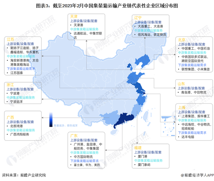 集装箱运输产业链区域热力地图:东部沿海地区领先企业分布较为集中