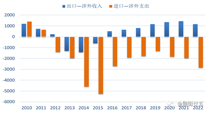综上分析,2022年创记录的贸易顺差与萎缩的外储本身并不矛盾。首先,二者不是合适的可比指标。其次,因统计口径的差异及交易者不同的交易行为影响,贸易顺差到外储形成的各个环节都存在漏损,这也是近年来“藏汇于民”的结果。再次,货物贸易只是一国跨国经济活动的一部分,再高的顺差也有可能被其它项目的逆差冲抵,造成外储的减少。因此,简单对比贸易顺差与外储萎缩,便得出结论认为是资本外逃,有失偏颇。