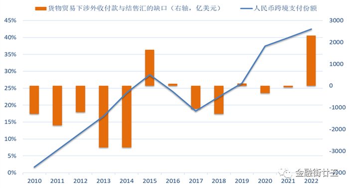 图2:人民币跨境支付份额及涉外收付款与结售汇的缺口对比