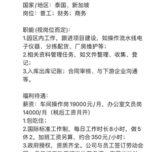3月22日,潮新闻推出“我在缅北‘高薪敲键盘’”相关报道后,引发全网关注。3月23日,中国驻缅甸大使陈海会见缅甸副总理兼内政部长梭突中将,双方就加大力度打击网络诈骗、赌博等非法跨境犯罪活动进行会商。随着缅甸电信诈骗事件不断发酵,连日来,潮新闻接到全国50余名受骗者电话求救,“我们被骗到泰缅边境调试工厂设备,一名工程师已被转卖到缅甸。”受骗者称,他们在求职群看到“泰国项目”招聘信息,“做5休2,每天工作8小时,税后工资19000元/月”。但签订合同后,他们才发现这是个彻头彻尾的骗局。他们向潮新闻讲述受骗经历,希望被困伙伴能被安全送回,也提醒大众“出国务工”务必当心受骗。“国外技术工”招聘火爆“园区内工作,跟进项目建设,如操作流水线电子仪器、分拣配货、厂房维护等”。3月23日,受骗者之一张树生(化名)向记者发来这则“泰国项目”招聘信息,他和工友们交流后估计面试者达上百人,他知道被淘汰的人员有二三十人。张树生说,年初这则招聘信息在业内求职微信群刷屏,条件比较诱人。招聘上写着泰国公司招聘普工、财务和商务三类岗位,每日工作时长8小时,做5休2,加班工资另算,年龄要求37岁以下,包吃住,和泰国公司直签合同。