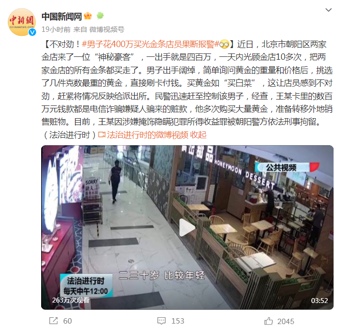 热榜!“神秘豪客”花400万元买光两家金店金条,店员觉得不对劲,果断报警!警方曝光真实情况