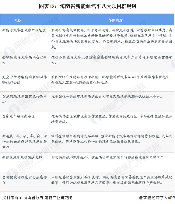 “十四五”期间,海南省新能源汽车产业共有八大项目群规划:
